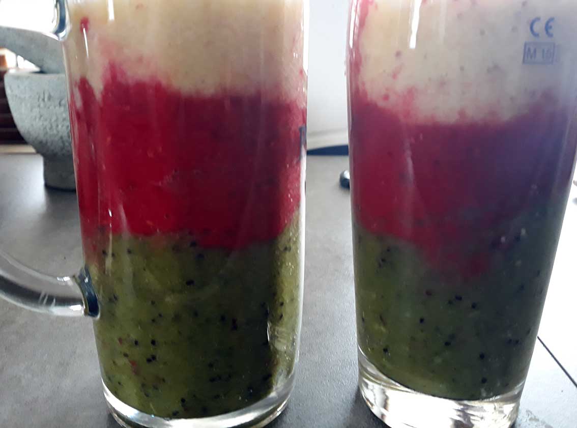 winter smoothies fuer die ganze familie, rezept, spinat, orangen, kiwis, ananas, äpfel, gefrorene Himbeeren
